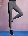 Women's full length contrast leggings benefitting from a wide double layer comfort waistband and ergonomically placed contrast panels for comfort and fit. A concealed zipped pocket to the back of the waistband and elastomeric yarn content add to the product's functionality.