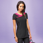 The Ivy Beauty and Spa tunic from quality workwear brand Premier. Smart and modern styling with contrast panel detail around front neck line